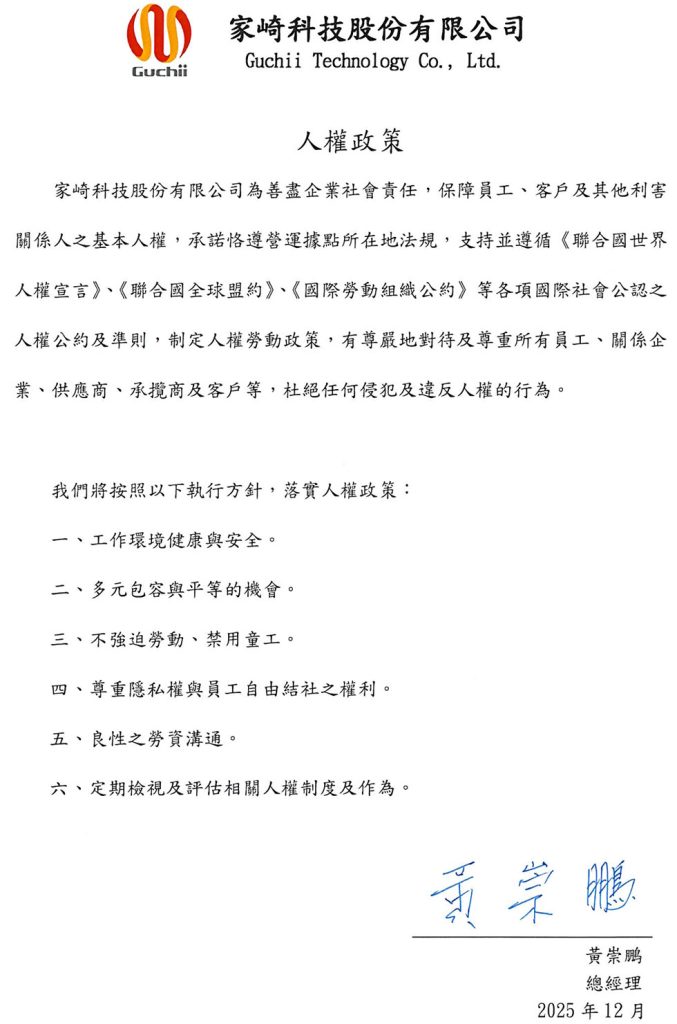 人權政策同步於公司官方網站公開揭露,提升員工與利害關係人的人權意識,進而持續改進。